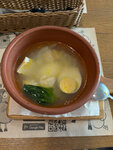 Наваристый куриный бульон с домашней яичной лапшой, курочкой, яйцом и свежим шпинатом