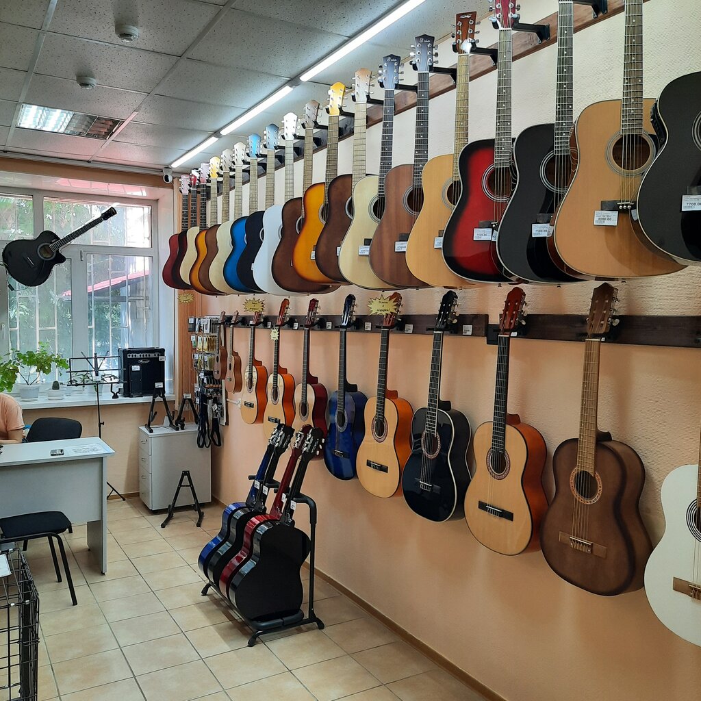 Магазинчик понравился. Маленький, только под гитары. Супер дорогих гитар нет, но основные предложения присутствуют покупали Yamaha 310 цена такая же как в интернете, НО можно прийти посмотреть пощупать попробовать, а не ждать что привезет курьер.