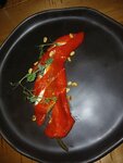 Подкопченный лосось, жаренный Рамейн и перец рамиро