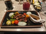 За "Мустанг" обидно. Он был очень классный много лет. Отличные стейки, быстрое обслуживание, невероятный антураж до ремонта. Стены, расписанные в тематике дикого запада, распашные салунные двери - очень красиво и необычно! За разнообразными и доступными бизнес-ланчами иногда приходилось постоять очередь... А потом ресторан закрылся на ремонт. Примерно на год. Ремонт, конечно, хорош. Очень респектабельно стало. А вот обслуживание и кухня пострадали (основное меню). Бизнес-ланч по-прежнему неплох. Недавно дали еще один шанс - все-таки с открытия прошло много времени. Но нет. Стейк посредственный, жесткий. Все остальное, что на фото - пойдет, но не вау. Коктейль вкусный. Официант не смог рассказать про пиво и коктейли. Вообще НИЧЕГО! Даже чье пиво. Страну даже не смог сказать! Плавал и придумывал на ходу состав коктейлей. Хотя работает там очень давно. И это странно...
