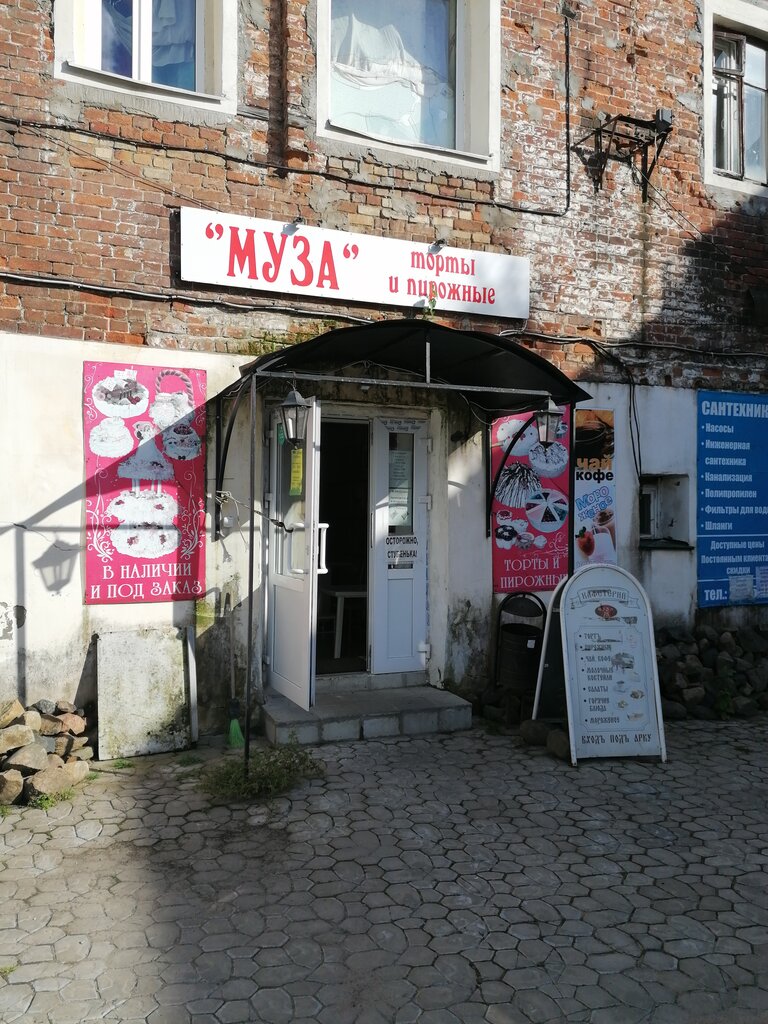 Прекрасное место ,магазинчик с пирожными и тортами от фирмы Муза,можно всегда вкусненько попробовать свежие пирожные муза за минимальные денежки и выпить чаю или кофе, всегда мило уютно в духе советского времени но с теплотой и добротой , есть столик стульчики , все свежее на продажу и огромный ассортимент , всегда заходим ,когда бываем в старом городе у Собора