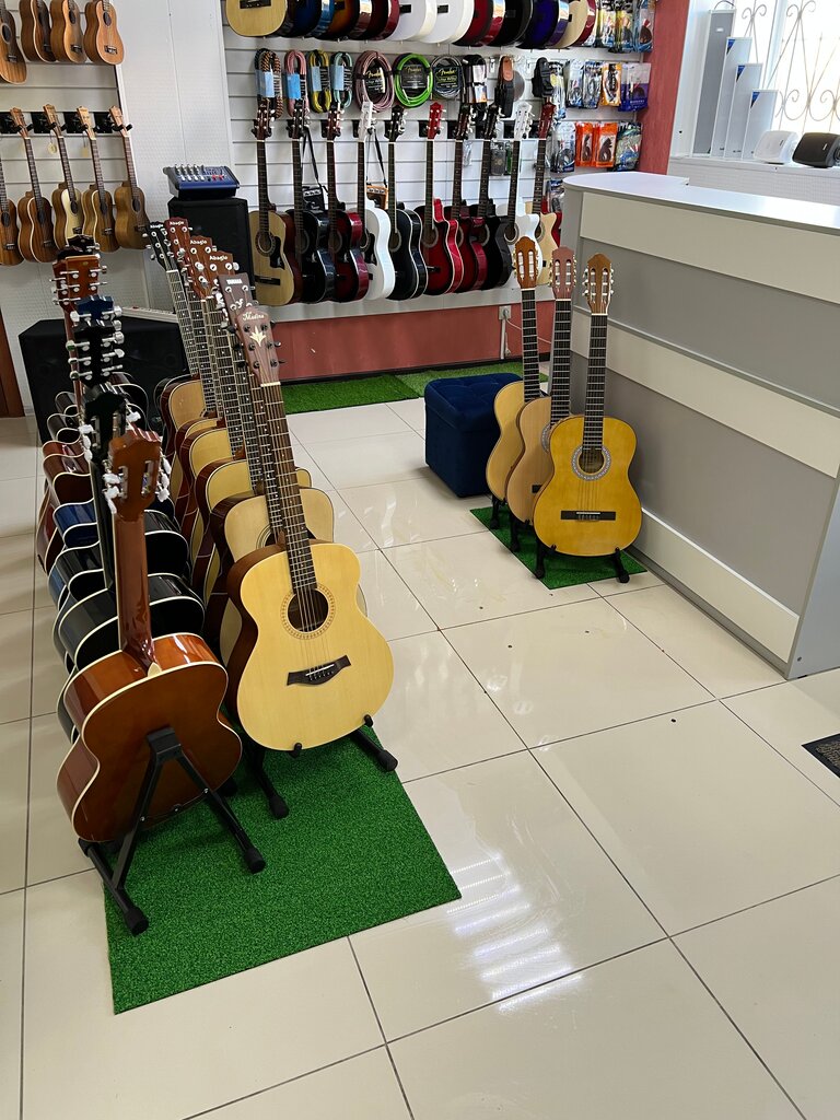 Плюсы вежливый персонал большой асортимент музыкальных инструментов