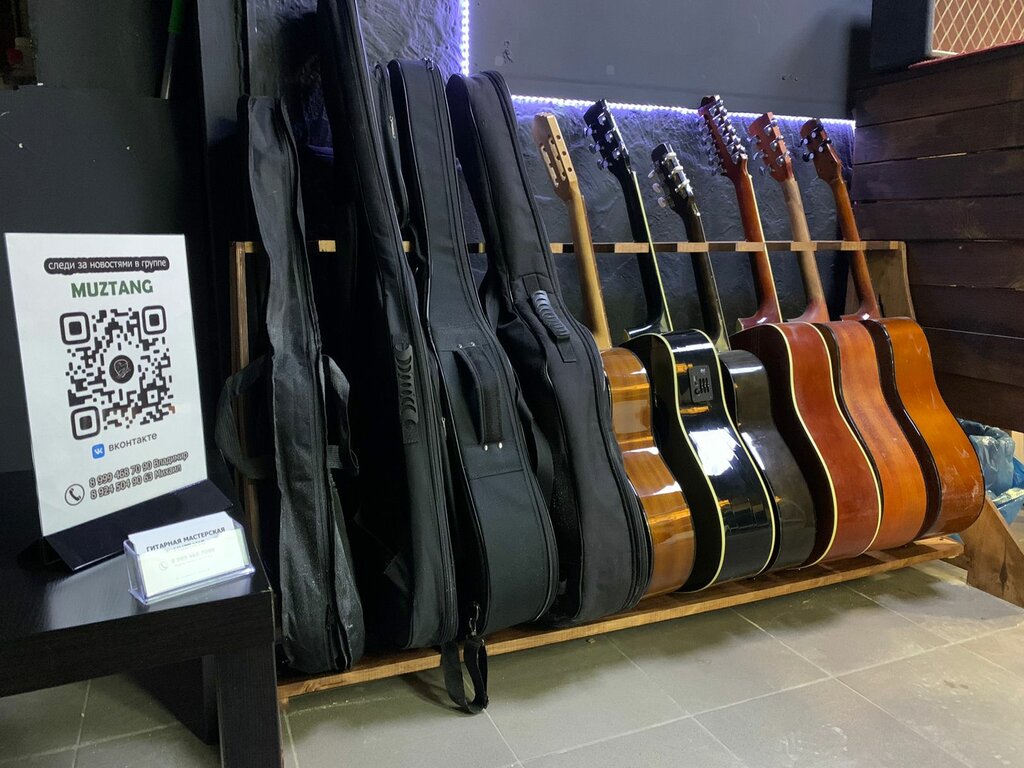 Отдавал свою гитару на обслуживание! Поменяли струны, пошлефовали, подкрутили - стала звучать как новая ! Лучшая гитарная мастерская города! Люди там ооочень приятные и профессиональные