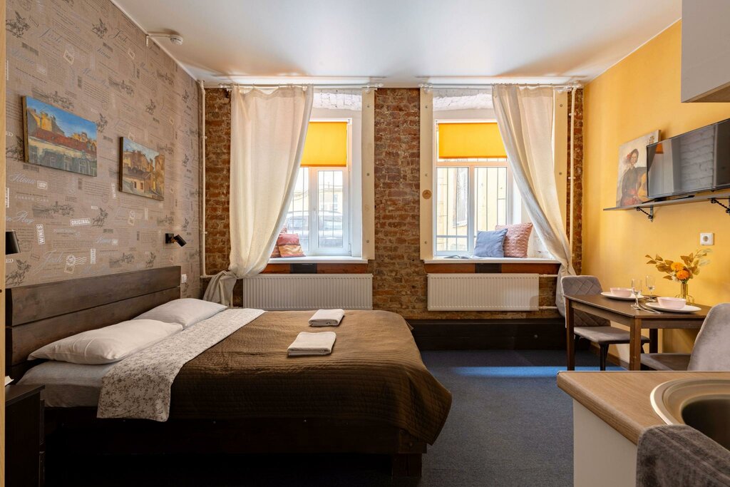 Отдыхали с подругой с 25 по 30 мая, все супер, номер чистый, но на шторах и подушках на подоконниках пятна которые уже не отстирываются, можно конечно уже заменить 😂в номере есть все, посуда, полотенца, чистое постельное белье, микроволновка, единственный минус, холодно, так как находится на цоколе, обогревателя нет, попросили второе одеяло, нам дали, так же есть стиралка, что не мало важно, есть плита и чайник, полноценная квартира, главное что в центре и можно добраться до любой точки на метро, такси или пешком как это мы делали, рядом пятерочка и столовые Нам очень оооочень понравилось, я нашла в Питере то что мне нужно, приезжать я теперь буду только в эту квартиру 🥰🤗администратор хорошая милая девушка, помогала во всех вопросах, ни кто из персонала не надоедал, залогов ни каких не оставляли