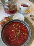 The interior inside is excellent, original. (I don't know where they borrowed it , but it looks very good) . Dishes :,excellent serving, delicious ,harmonious. The waiters are great, they know their subject top five. We were sitting on the veranda at the top, the atmosphere is relaxing, smoking a hookah). It's a pity it works until 12))