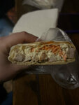 Решили попробовать шаурму, полагаясь на отзывы. Мяса много(как и майонеза) и это мясо пересоленное очень(наводит на мысли) овощей практически нет. Лаваш пережарили. Твёрдая троечка