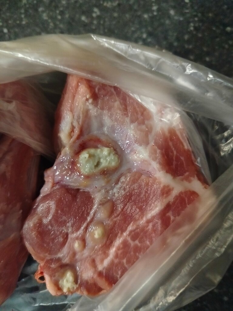 Уважаемые жители города, будьте осторожны! Обратите внимание, какое мясо (вырезка-шея) продают в магазине Мяскоff по адресу микрорайон Красная горка, 19. Купили сегодня 20.03.24г. Вопрос проходило ли оно ветеринарную проверку или в нашей жизни как всегда все решают деньги!? Дело каждого, но я больше никогда не пойду в этот магазин и ни кому не посоветую его