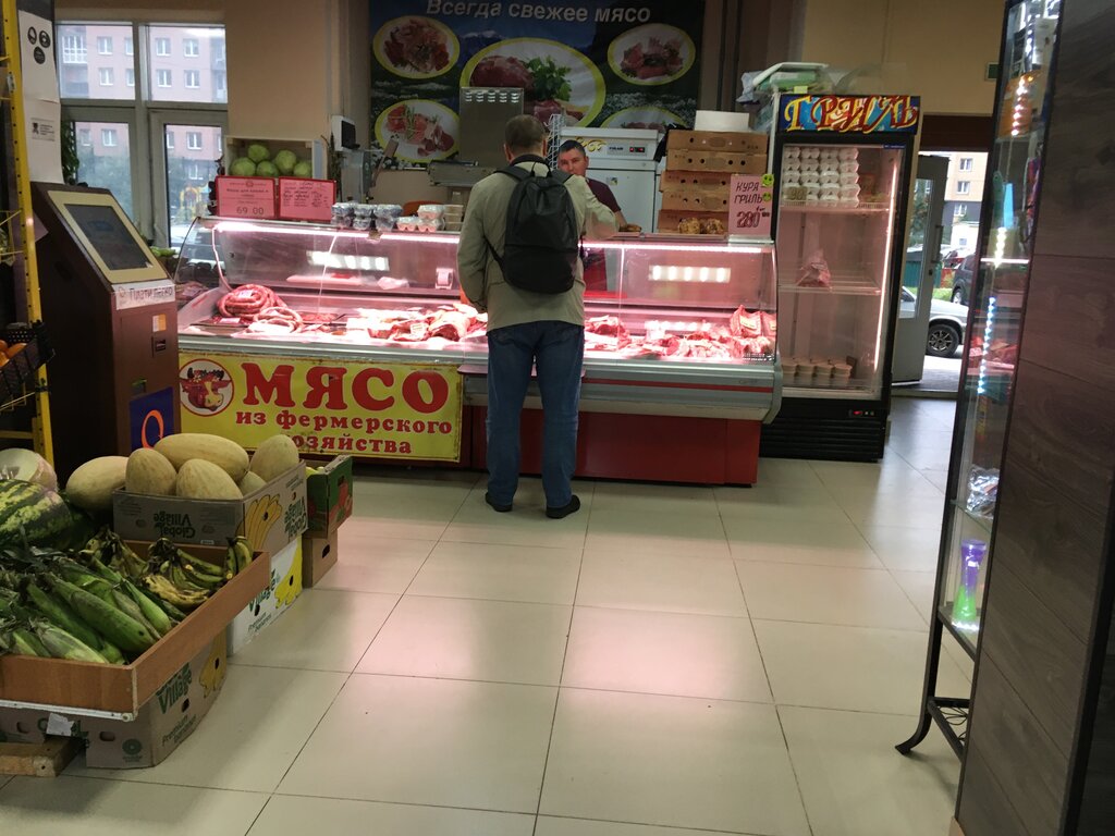 Очень вежливый продавец ,всегда поможет с выбором ,прокрутить мясо на фарш , если надо .Я у него часто покупаю ,иногда прошу оставить покупку в холодильнике до вечера ,что очень хорошо ,т.к работаешь с утра до вечера, вечером идёшь уже выбора нет такого .