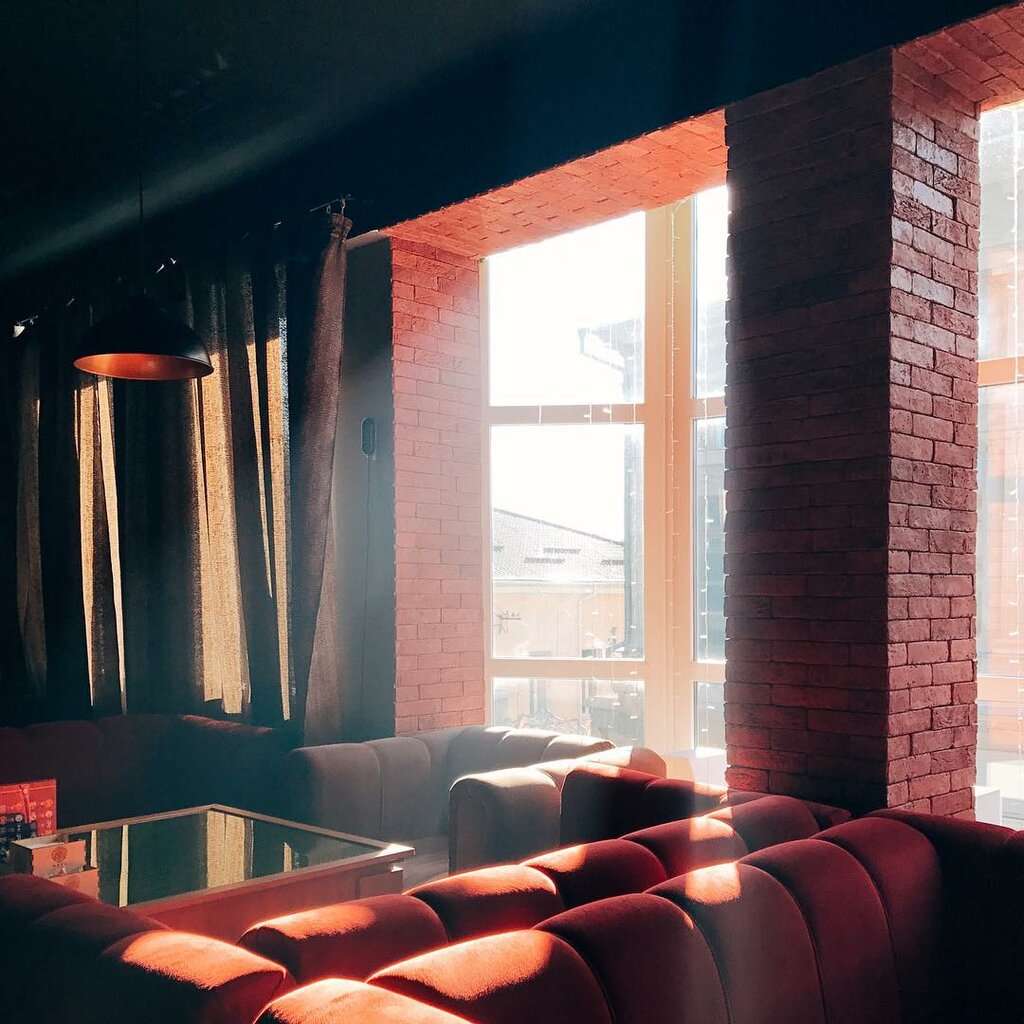 Было душно, хотя кондиционеры в помещении есть и ими не поользовались. Странный вход - как будто в офис на 2-й этаж поднисаешься. Приятная атмосфера, вид из окна на красивое здание театра. Удобные диваны, общение за столиками не разносится по всему заведению - хорошее звукопоглощение. Проводятся тематические мероприятия и игры. Курить посетители спускаются на улицу.