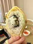 Часто заказываю здесь, последний раз меня «приятно» удивили, я заказывала позицию онигири с лососем, решила перед употреблением посмотреть на вид блюда и удивилась) Помимо пары очистков лосося мне положили много помидоров и листья салата, еще немного перца)) Мало того, что это совершенно невкусно, в описании блюда нет ни слова про помидоры, салат и даже про перец. Аллергию к сожалению никто не отменял:(