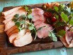 Куриные колбаски с сыром Эмменталь в ресторане в Симферополе «Мычара», подаются с ялтинским луком, соленым огурцом и перцем халапеньо. «Мычара» — идеальный ресторан в Симферополе для веселого торжества в кругу друзей, пока ваши малыши наслаждаются...
