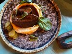 Картофель печенный в ресторане в Симферополе «Мычара», в золе с подкопченным маслом и твердым сыром, подается с муссом трюфельным пармеджано. «Мычара» — идеальный ресторан в Симферополе для веселого торжества в кругу друзей, пока ваши малыши насл...