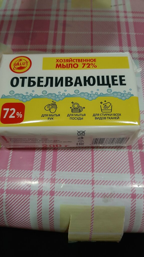 Купила три куска и все выбросила. Вонь как от навоза. Из чего вы его делаете? Отбеливающее. Попробуйте им просто плмыть руки и угорите. А уж про стирку или мытье посуды уже не говорю. Ужас. Сделайте что-нибудь. А ОТК накажите:выпускать такой товар это вредительство.