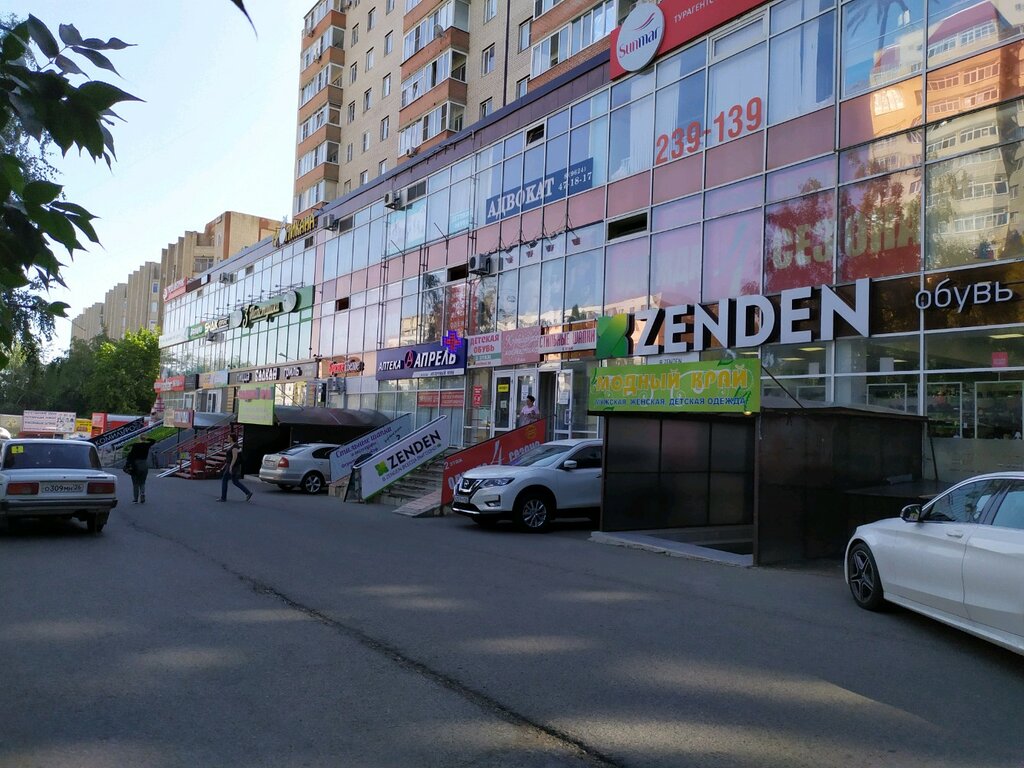 Торговый центр недалеко от дома, есть сетка магазинов Зенден, 4 сезона это одежда, обувь, всё для дома, зубная клиника, по-моему для деток, Пятёрочка, Аптека и многие другие