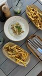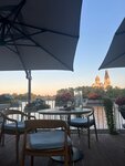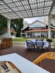 Место очень симпатичное, отличный вид на воду. При выборе веранды стоит учитывать, что она находится непосредственно на воде, так что на ней прохладнее, чем просто на улице. Кухня выше среднего, но не топ. "Карпаччо" из томатов, которое просто помидоры нарезанные слайсами с заправкой... Заправка подходящая, да, но цена за блюдо очень сильно завышена. Суп из лисичек - неплох и был бы отличным для кафе, но для ресторана простоват. "Шашлык" из вырезки оказался очень странным блюдом - мясо нарезанное тонкими пластинками, пожарено гармошкой, видимо на мангале. Соус к мясу был подходящий, но количество мяса в блюде ну очень скудное. Соответственно, цена тоже с большим перебором. В целом - максимум 4 с большим минусом. Не сказать, что сильно разочарован, но повторно не зайду.