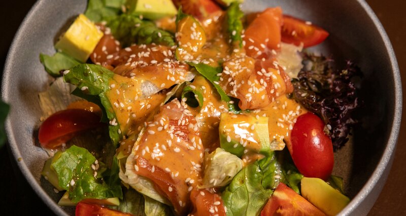 Сочетание хрустящих огурцов, нежного микса салатов, ломтиков лосося и кремового авокадо украшено воздушными яйцами пашот и согрето ароматным голландским соусом. Хрустящие кусочки хлеба добавляют насыщенности, а семена льна завершают композицию пик...