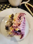 28 июня.Брали салат ,курица грибы, салат свежий, но по мне много Майонеза . Зраза куриная с сыром. Чай ягодный и синабон. Все свежее вкусное.приятная обстановка. 27 декабря зашли повторно покушать Брали : сельдь под шубой,морковный торт, салат весенний, голубец и пюре. Все вкусное,свежее