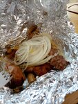 Свиная шея ,соль, чёрный перец, паприка, красный лук, лаваш