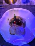 Ставлю 5 звёзд с минусом 🤗 🌟 Начну с начала. На входе встречают, помогают раздеться и проводят до столика. Когда мы пришли, уже стояло 1 блюдо, но к сожалению оно было холодным. Пришли за 20 минут до начала. Сеты из 3 блюд небольшие, но вполне вкусные! Очень понравилась рыба и десерт. На аперитив бокал шампанского проссеко, что тоже приятно. Игра актёров потрясающая! Голоса у Билл Джуса и Дракулы в самое ❤️ Всё представление шло часа 4, после актёры поют и можно танцевать. Из минусов: изначально посадили не за тот столик, но потом в замен дали бутылочку шампанского, много раз подходили и спрашивали мнение. Это приятно! Персонал заботиться о сервисе! И колонны, за которых иногда совсем ничего не видно. Спасает то, что актёры ходят по залу. Официанты быстро убирали столики, каждый был одет и разукрашен в приведение, играл свою роль - это круто 👍🏻 создаёт изначально атмосферу в театре! Дополнительно можно заказать напитки и еду, кстати напитки очень неплохие! Каждый коктейль почти в авторском исполнении. За свою цену театр стоит того! Возможно хотела бы посетить это место ещё раз, взяв другой столик (чтобы обойти эту колонну) Не смотря на оба минуса, мне понравилась такой сервис и забота о госте! И ремарка, кальяны в театре лишние. Во первых не очень было сидеть у бара, когда там во всю раскуривали кальян, во вторых кальян на столе загораживает актёров. Ну и совсем это моветон в театре))
