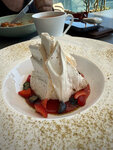 Выбирали между несколькими панорамными ресторанами и не прогадали. Ресторан Националь понравился интерьером, большим количеством зелени, богатой винной картой, которая хорошо сочетается с блюдами из меню и при желании даже с десертной картой. Мы с супругом попробовали мидии в сливочном соусе, лазанью и жюльен с морепродуктами ( это блюдо отметила официант и мы тоже в него влюбились), салата моего не оказалось, поэтому выбор пал на десерт Анна Павлова. Я не сильно люблю сладкое, а этот десерт был просто замечательным, в нем сочеталась не притворная сладость с кремом чиз и кисленьким топпингом-вареньем. Стоит отметить потрясающие виды на море и набережную, романтично пролетающих чаек на уровне твоего зрения и бесконечный горизонт. На террасе довольно тепло даже в прохладный день.