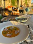 Один из лучших ресторанов Анапы с красивым видом и интерьером. За пять лет были разные периоды - от wow до ужас. Рада, что сейчас снова и еда и сервис на уровне. Еще открыли летнюю веранду, где особенно приятно вечером встречать закат. Новое меню с интересными позициями. Обязательно стоит попробовать окрошку на просеко с клубникой, креветками, авокадо и манговым сорбетом (1100р). Такой оригинальной подачи нигде не встречала. Разнообразие закусок, салатов, десертов и вторых блюд удовлетворят Средний чек на человека 2000-3000р. Цены немного завышены, порции не большие.