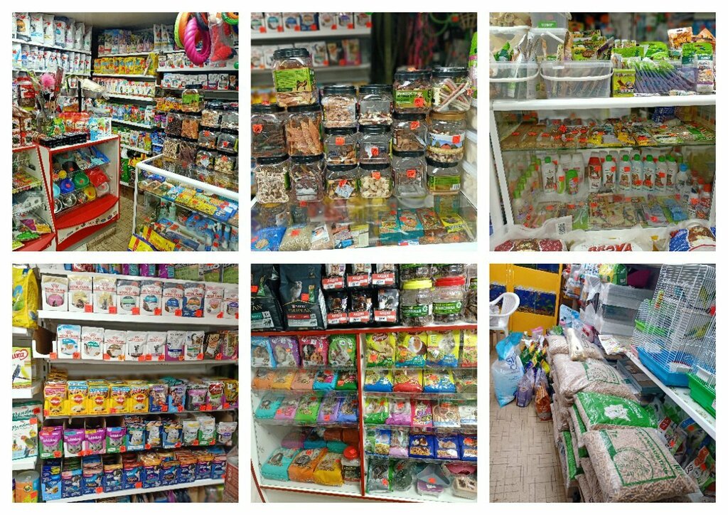 Темный, маленький магазинчик, но кормов для животных много, причем разных и для разных животных: крыс, кроликов, попугаев, щеглов, кошек, собак и т.д. Есть в продаже рыбки , аквариумные растения, ракушки, иногда бывают лягушки и тритоны.В наличии аквариумы ( и всё к ним),посуда для животных, лотки, в общем как практически везде