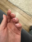Ну так себе сделали маникюр в последний раз, если честно. Было снятие гель-лака и комби маникюр. Оставили очень много кутикулы, хотя я просила срезать больше, там можно было гораздо больше отрезать, и пальчики дольше выглядели бы ухоженно. Мастер пыталась убрать лишнее аппаратом (не знаю, зачем, лучше бы кусачками ещё раз поглубже прошлась). Ну, в первый день выглядело красиво, но через три дня вся кутикула на месте - см.фото. Когда я сама себе обрезаю или делаю обрезной маникюр в других салонах - кутикула так быстро не возвращается, убирают гораздо глубже.