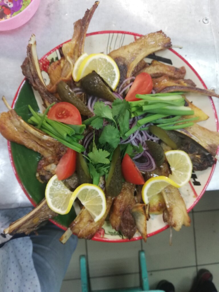 Немного скрасило моё впечатление 2 фактора: 1. низкая цена, 2. неплохая кухня. Например мне понравился салат с баклажанами и курицей, очень вкусный чебурек и шашлык из баранины тоже был неплох. Повару спасибо большое! А теперь минусы: 1. Ремонт мне кажется не проводили здесь лет 10, ламинат прошаркан до своего основания, и всё остальное выглядит очень потрепано, владелец ресторана появляется здесь? 2. Меню которое нам принесли похоже достали из чьей-то тарелки, т.к. с него капал жир. 3. Матерчатые салфетки для ножей и вилок в пятнах - лучше бы подавали в одноразовых. 4. Скатерти заляпаны. Другими словами, здесь можно вкусно поесть, чувствуя себя при этом в заводской столовке. И ещё, было бы неплохо лепёшку подавать тёплой, а не второго дня из холодильника.