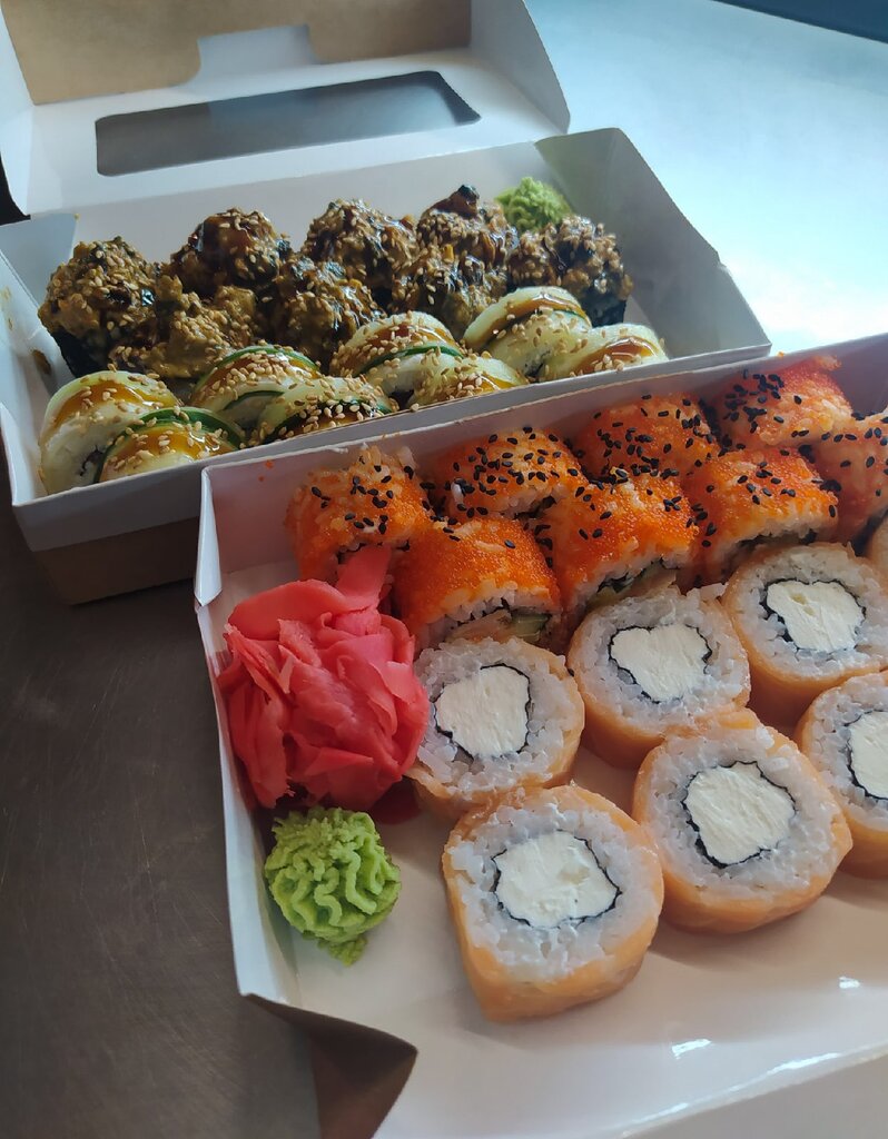 The composition of many items is not indicated on the website, and the weight is nowhere to be found. It was necessary to register. We waited 2 hours for the order. We put 3 gloves for two people and not a single napkin. Soy sauce for 2 rolls, ginger and wasabi. Two sticks. There was no spoon for the soup. There was no fork for the salad. The hot and cold dishes were put in one package, although there were two packages. Tom Yam (barely warm) Shrimps are overcooked (tough and tasteless) The broth is just water with hot oil Mussel shells, mussels are not cleaned - with algae, overcooked (hard). They put a tablespoon of rice. A croissant is a tasteless bun, not a croissant. If you wanted a bun, you have a Salmon Burger position. There was no cucumber, just green onions, iceberg lettuce, salmon as tasteless as in Philadelphia, and the curd mass is not purely creamy, but with something. Philadelphia - salmon has no taste, it has been frozen more than once. Nami burger with a crispy, tender crust. Tomato cut into small cubes with white hot onion mixed with mayonnaise and mustard sauce, cutlets are placed on top of a single mass. Last time I ordered, everything was as indicated on the menu and it was delicious. Not right now. Chicken wings are delicious and spicy. As with the last order, we just had time to cool down. Salad: there is a lot of oil, naturally everything has dried up from the hot temperature. I recommend ordering only wings.