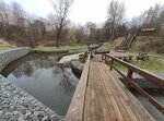 Красивая достопримечательность Народный мост в парке 50-летия Октября через реку. Очень атмосферное и уютное место. Вокруг зелень, лавочки и вода журчит