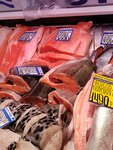 В этом магазинесамый лучший рыбный отдел! Есть большой выбор. Осетра выложили на прилавок, а он ещё живой.Много замороженных морепродуктов.