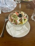 A popular place on the waterfront. I liked the sculptures downstairs and on the upper floor. A lot of people, especially in the evening, were sitting on the top floor. They were waiting for the waiter from behind the counter. According to the price tags, it's acceptable. Salads are medium, the serving is pleasant. What got me hooked is the boats! I fell in love with a boat with egg, cheese and pork - very tasty and very satisfying! There were also delicious feijoa and cherry plum compotes. Not cloying, not diluted. For familiarization, I recommend going exactly