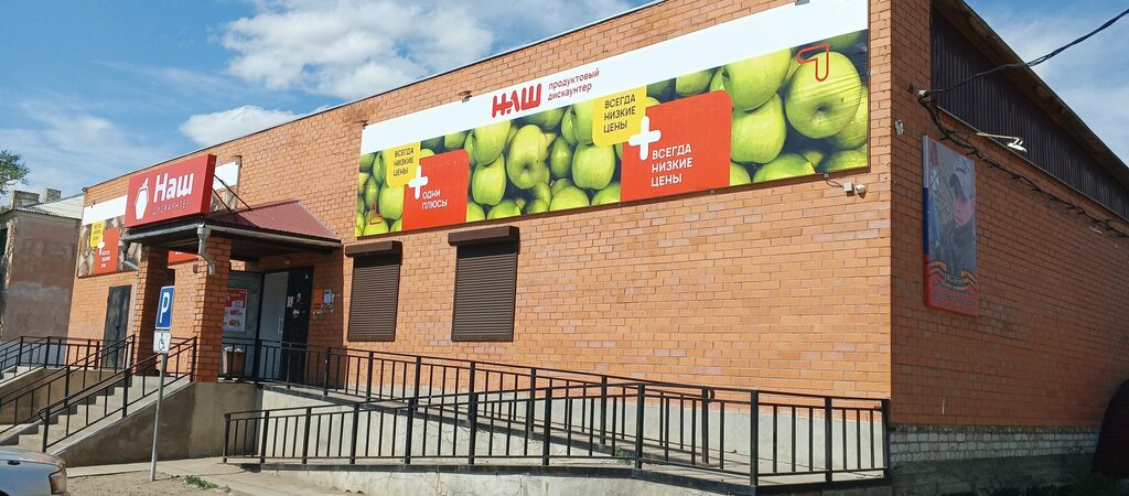 Магазин Наш привлекателен разнообразием товара, выкладкой, свежий завоз и обновление ассортимента продуктов, в одном месте можно купить и канцелярию, одежду, гигиену и др,. Товар раставлен по группам, Учтено товарное соседство. Продавцы вежливые, аккуратные, обслуживают быстро. Грузчики работают осуществляя быструю разгрузку-загрузку товара из машин и развозят по залу к местам продажи. Магазин пользуется большим спросом среди населения города.