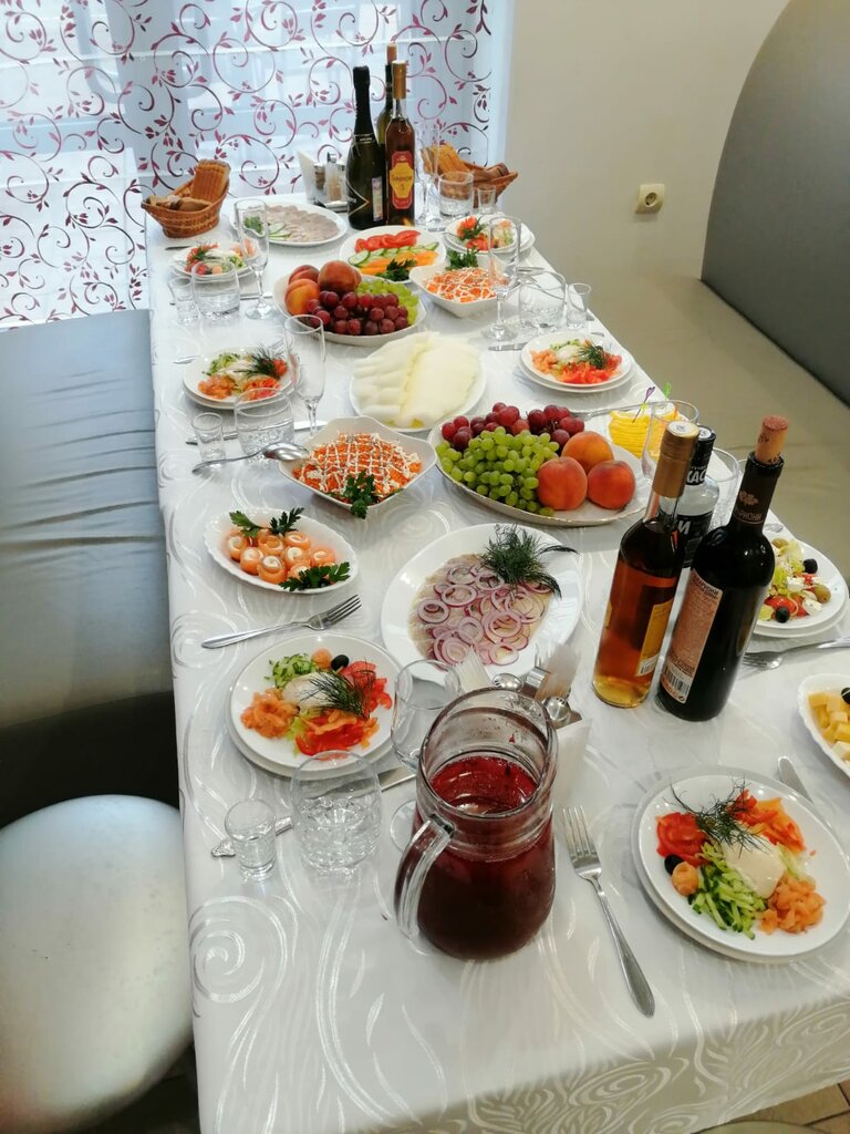 Был там на вечере встречи выпускников. Еда так себе, сразу скажу. Совершенно не соответствовала уплаченной сумме. Один графинчик сока на 12 человек... Унылое подобие греческого салата. Скудное горячее и т.п. Киви нарезаны непойми как. Чайных ложек не дали. Как эти киви есть? С кожурой? Нарезки нищенские. Всё нищенское... Гардероб без номерков, со свободным доступом - бери что хочешь, не стесняйся) Туалет - одна кабинка, и та открытого типа. Где приватность? Закрывается на умирающую щеколдочку. Всё ушатаное-убитое. Нас разместили на втором этаже в большом зале, куда параллельно с нами разместили ещё несколько выпусков. Галдеж стоял страшный, что в сумме с музыкой сильно осложняло общение с людьми, которых не видел пять лет. Примерно через час после начала один из выпусков пожелал пуститься впляс, и диджей навалил музон ещё громче. Таким образом, общение практически полностью стало невозможным. (Не понимаю, куда они пришли, на вечер встречи выпускников или на танцы после водочки?). Надо отметить, что музон был так же отборнейшей шляпой из сериалов про слово пацана, киш и т.д. Администрация на наши просьбы сделать музыку потише реагировала никак. Колхоз страшнющий.
