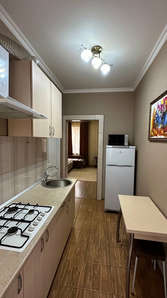В целом неплохой вариант, а по отношению цена/качество практически идеальный. Мы были на Садовой 14, самый главный плюс этой локации - практически полная тишина ночью. Домик находится в глубине двора, метрах в 30 от дороги. Домик на 2 номера, один с внутренней ванной комнатой, в другом надо пройти через кухню, которая в общем пользовании, но мы в ней использовали только чайник. В нашем номере были теплые полы и было просто оооооочень комфортно, куда там батареям до такого распределения тепла. А вот другой номер и кухня с батареями. Соответственно, установлен газовый котел, очень тихий, он же греет горячую воду. Поэтому горячая вода примерно как с газовой колонкой (олды должны помнить), надо дождаться устойчивой её подачи. В номере есть холодильник (мы его сразу отключили), телевизор с приставкой, микроволновка. Матрас скажем прямо не премиальный, жестковатый, но на неделю норм. Кровать не скрипит. Ночью, повторюсь, гробовая тишина. Домик находится в довольно депрессивном районе, впрочем как и все Ессентуки, кроме Парка. Выходить на Садовую буквально из подворотни и - вперёд, в Парк, в бюветы и на процедуры. Это очень близко, до бювета номер 17, который наконец открылся после ремонта! буквально 5 минут. До местной культовой столовой Почтамт минут 7. Улица Садовая довольно загружена трафиком, но расположение в глубине двора спасает от шума. Можно поставить машину в этом самом дворе.