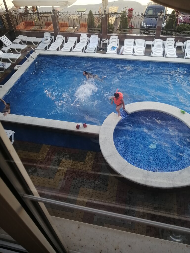 Отдыхали в этом отеле с 5- 19 июня 2024г. Очень отзывчивый персонал, подогреваемый бассейн, хороший ремонт в номере. Из недостатков только мебель, которую следует уже обновить и перебои с горячей водой, но может из-за того, что жили на верхнем этаже . До моря 10 минут пешком. Отель находится в центре Витязево, всякие кафе и парки аттракционов в шаговой доступности . При отеле есть своя столовая, довольно вкусно готовят, очень рекомендую заказать хачапури по-аджарски пекарь в их столовой делает это блюдо по высшему классу!!!
