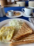 Были в кафе проездом, предварительно посмотрев заведения в округе. Из плюсов: свежий интерьер, чистая посуда, отсутсвие посторонних запахов, чистый туалет. Ели по основному меню: скорость приготовление блюд 4+. Что не понравилось: приготовленный салат цезарь отдавал сильным запахом холодильника, но был свежий. Данный запах портил весь аппетит. Брали стейк (больше напоминал отбивную или заготовку для шашлыка) с картофельными долками. Блюдо на твердую 3. Все портили мухи в заведении, которые кружмли вокруг. Заведение на вкус, очень большой.
