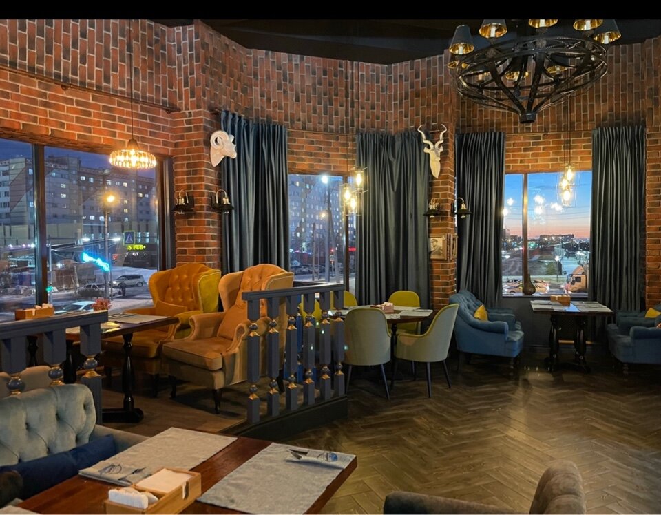 Интерьер и атмосфера классные! Стильно, уютно и ничего лишнего в тот же момент! Всегда вкусная кухня. Обходительный персонал. Постоянным гостям всегда стараются найти свободное место. Караоке крутое для тех, кто умеет петь.