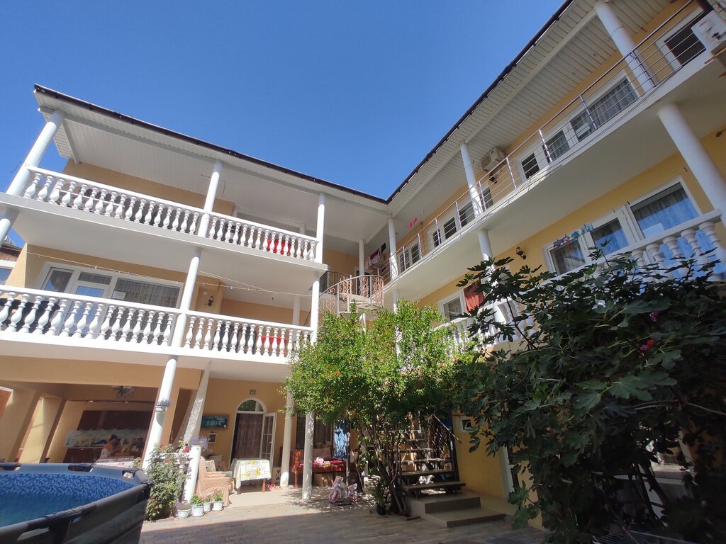 Отель на 1 из 5 звезд. Огромный плюс удобное место расположение, как для отдыха на центральном пляже , так и для прогулок на набережной. Бронировали несколько номеров, но минусы везде одни. В номерах за 10 дней ни разу не менялось постельное белье, полотенца поменяли со слвами: " А зачем их менять", уборка в номерах не проводится. Сантехника вся в соли, диван сломан (не раскладывается), жуткий запах канализации (жили на 2 этаже) и сырости. Туалетной бумаги , освежителя , мыла нет. Бассейн на территории расположен "для того , чтобы был" он либо постоянно чиститься, либо без воды. Плюс довольно просторная общая кухня с посудой и газовой плитой. Есть возможность за деньги постирать в стиральной машине. Парковки , что внутри , что снаружи нет . Хозяин на одно и тоже место ставит 2-3 машины по очереди , если уехал , считай парковки больше нет Кондиционер еле работает, жуткий запах сырости и пыли от него.