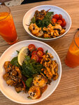 Обслуживание, кухня, интерьер- все прекрасно!! Когда не осилила заказанную шакшуку , официантка подошла спросила все ли в порядке с блюдом, это очень порадовало. Отдельно хочу отметить сырники, пальчики оближешь😍 Единственное - не понравился лимонад с киви, но это чисто вкусовщина, поэтому претензий нет