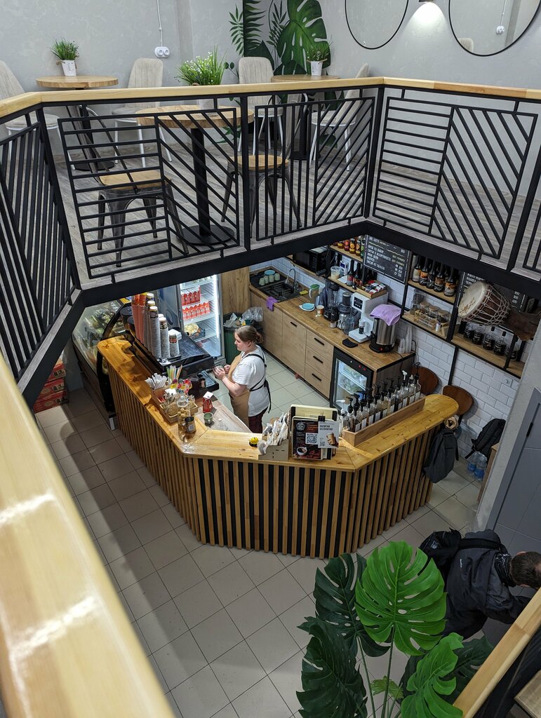 Delicious coffee and friendly baristas. I advise you to try honey raff — it tastes interesting, honey is really felt. A nice veranda and several tables inside allow you to drink coffee slowly. Beautiful design of takeaway cups, delicious handmade halal cookies