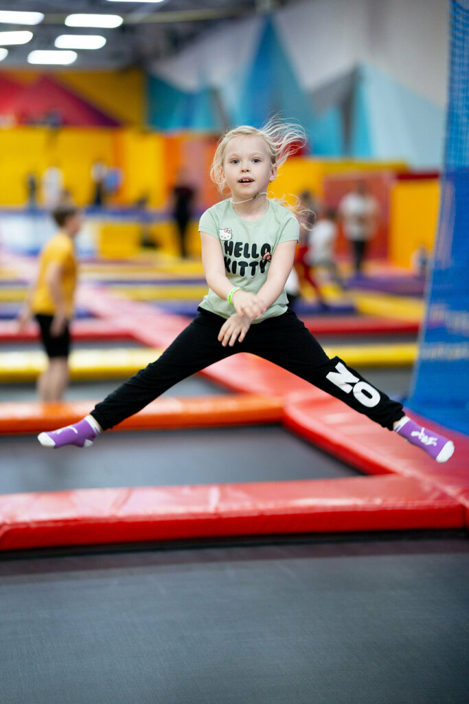 Раньше мы бывали в батутных зонах в игровых, но это другое. Здесь можно не только прыгать на разных батутах, но и покорять верёвочный парк и скалодром, проходить полосу препятствий, участвовать в VR-играх, а ещё кататься с горок и играть в бассайне с шариками. Видела много дней рождений (беру на заметку на будущее). Еще отдельно отмечу ресторанчик внутри этого центра. Просто удивительно, но там ооочень вкусные блюда и разнообразное меню, некоторые позиции кончились из-за дней рождений, но мы все равно смогли взять то, что понравилось. Борщ просто объедение, пицца с сырами выше похвал💜 Видела, что есть детки, кто ходит туда на гимнастику и воздушную акробатику. С собой для посещения: спортивная одежда➕носочки с прорезиненными пяточками, чтобы не скользить➕вода. Довольны!