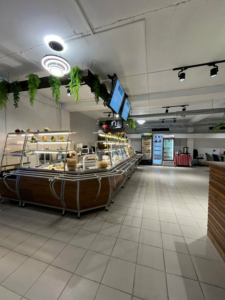 Уютная столовая , еда вкусная. Не дорого с дочкой вдвоём взяли окрошку, Цезарь с креветками, салат с баклажанами , брокколи и котлету из индейки 900 рублей. Всё вкусно очень понравилось приятная обстановка