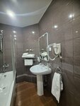 Нам, семье из трёх человек, все понравилось: позднее размещение, чистое бельё, чистейший санузел, довольно бесшумный в целом номер. Судя по забитому спиртным мини-бару, гостиницу посещают , в том числе, и ради развлечений. Об этом же говорят и некоторые прочитанные мною здесь отзывы. Но нас никто и никак не побеспокоил ни в коридорах, ни в соседних комнатах. Притом я заказала семейный номер - с двухъярусной кроватью- и , вероятно поэтому, он нам достался чистым и неизношенным. Пользуйтесь этим лайфхаком, друзья. Ванная полностью укомплектована предметами гигиены, в номере есть тапочки. Наутро в цокольном этаже нам предложили завтрак на выбор+скромный шведский стол. Нас этот формат и объём более чем устроил, хотя мы много где бывали.