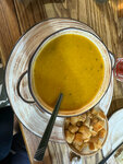 Заезжали 4.07.24г семьей из 5человек. Брали курзе(3порции), чуду, лагман,чечевичный суп пюре(идет с гренками),бефстроганов из телятины(две порции ),булочки 6шт. и лимонад. Очень вкусно и сытно. Вежливый,приятный персонал,уютная обстановка. Чек вышел на 2400. Супер!
