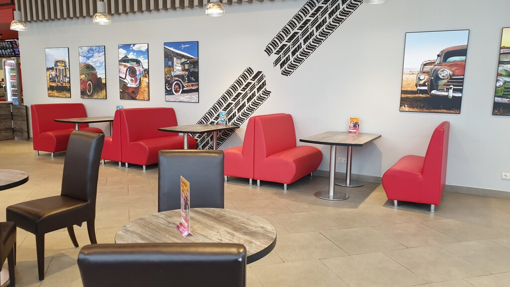 Очень нравиться сеть данных заправок. Их концепция, и то, что помимо заправки бензина можно так же при желании полноценно поесть, как готовую еду (всегда свежая с хорошим сроком еда), так и заказать индивидуально. Не зависимо от то где я останавливались, всегда обслуживают вежливые продавцы, это тоже очень приятно! И много станций заправок, не нужно ждать... Адекватные цены тоже радуют)))