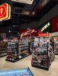 Отличная автозаправка с магазинчиком. Ассортимент, как и сам бензин, неплохой. Цены на доп. товары высоковаты, но это же заправка. В этом же здании находится кафе. Помещения и туалеты чистые. Персонал вежливый, быстро обслуживает.