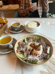 Выбрали ресторан для ежегодной встречи, где никто из нас (3 девушки) не был - место было неоднократно отмечено положительными отзывами. Несмотря на ожидание (и опасение) маленьких порций и лёгкой пищи, мы ушли сытыми и удовлетворёнными. Есть выбор коктейлей, закусок, попробовали суп и чай, а также все представленные десерты. Что-то понравилось больше, что-то меньше, но еда достойная. Персонал вежливый, обслуживание оперативное. Достаточно пространства и света, тепло, много оригинальных решений в интерьере. Впечатление замечательное, также передаём благодарность официанту Ивану.