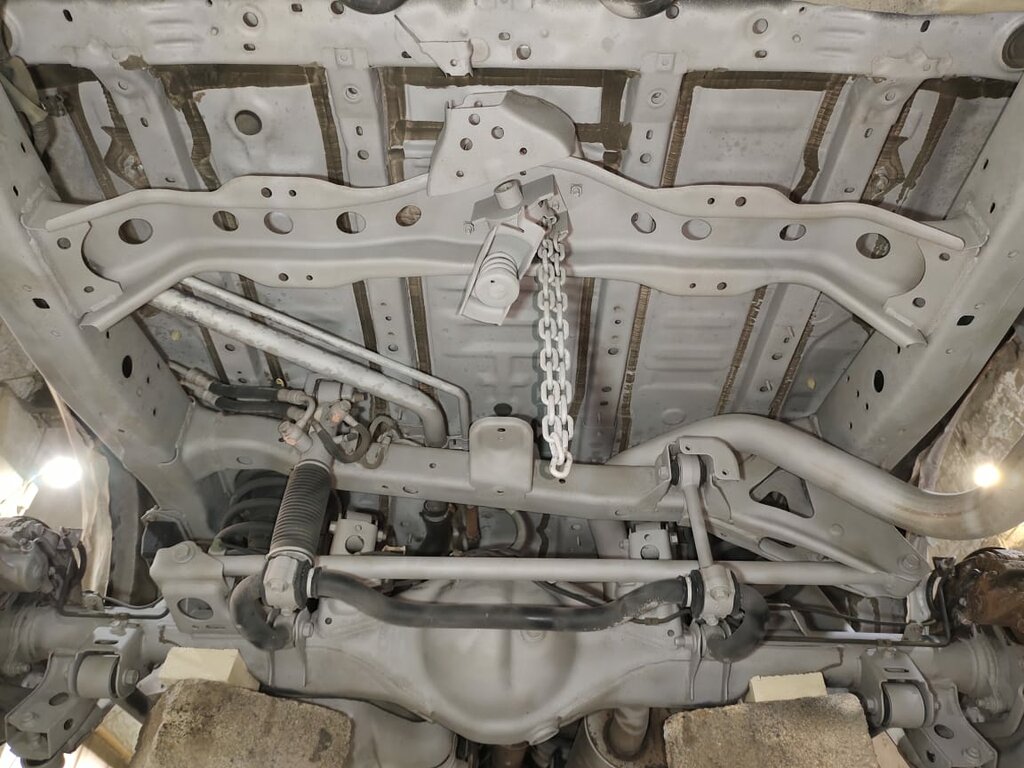 Пескоструйная очистка(удаление ржавчины,коррозии)днища,рамы. Горячее цинкование напылением расплавленного металла Zn. Нанесение грунта. Нанесение антикор материала. Обработка внутри панелей,рамы и днища автомобиля. Сборка с установкой нового крепежа.