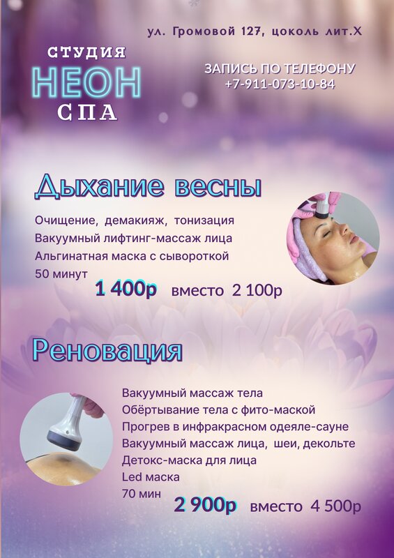 Дорогие друзья! 🌟 💜 Студия Neon Spa приглашает вас на Женский день красоты! Когда: 1 марта 2026 года Время: с 14:00 до 17:00 💜 Вас ждет...